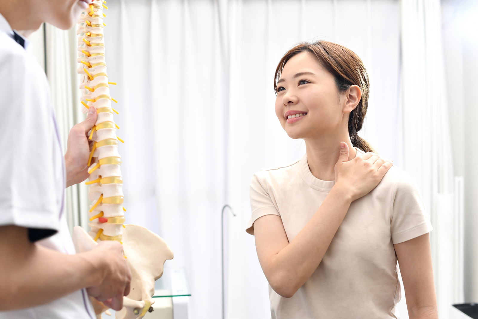 疲労が蓄積した筋肉には、トリガーポイントとよばれる固いしこりができやすくなり、体のいたる部分に痛みがおき背骨の歪みの原因になります。